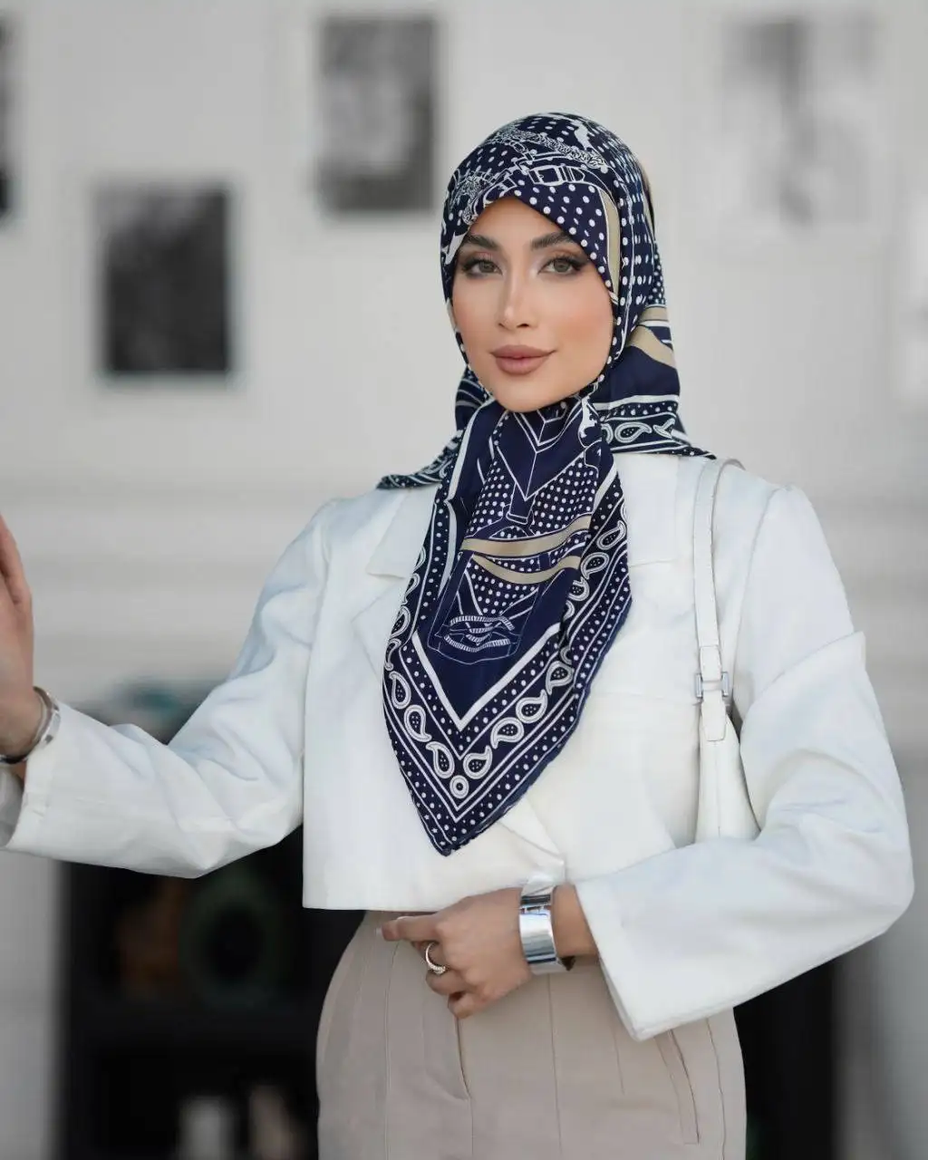 از نظر استایل، روسری ابریشم تووییل Ti004 بافت بسیار خوبی دارد. یعنی روی سر یا شانهها بهزیبایی مینشیند و حالتی منظم و خوشفرم ایجاد میکند. با وجود اینکه جنس ابریشم معمولاً کمی لیز است، بافت کجراه این روسری، لیز و سُر نیست و بهخوبی روی سر فیکس می ماند. این ویژگی آن را برای استفاده طولانیمدت، مهمانیها، یا حتی استایل روزمره کاملاً مناسب میکند. طرحهای گرافیکی و هندسی روی پارچه ترکیبی از نقطهها، خطوط و موتیفهای ظریف هستند که جلوهای مدرن در کنار حسی کلاسیک به روسری میدهند.